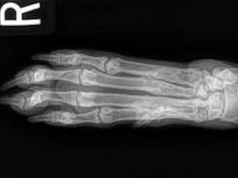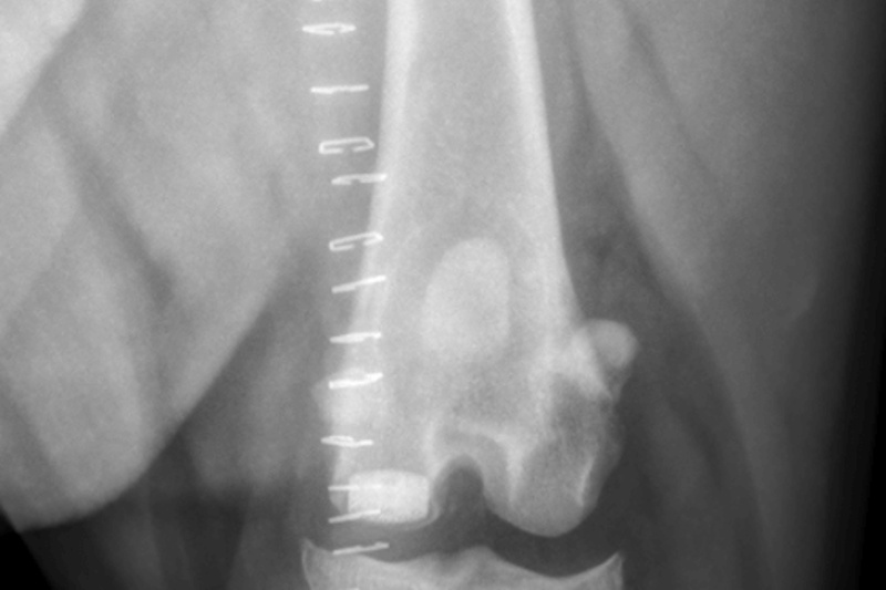 Orthogonal radiographs of both stifles are obtained and assessed. In the majority of cases, an effusion is visible within the stifle that demonstrates inflammation and pathology of the joint. The joint is assessed for other diseases such as osteochondritis dissecans (OCD), or neoplasia (cancer). Chronic cruciate injuries or those with concurrent meniscal damage tend to have an increased amount of degenerate changes visible on the radiographs.